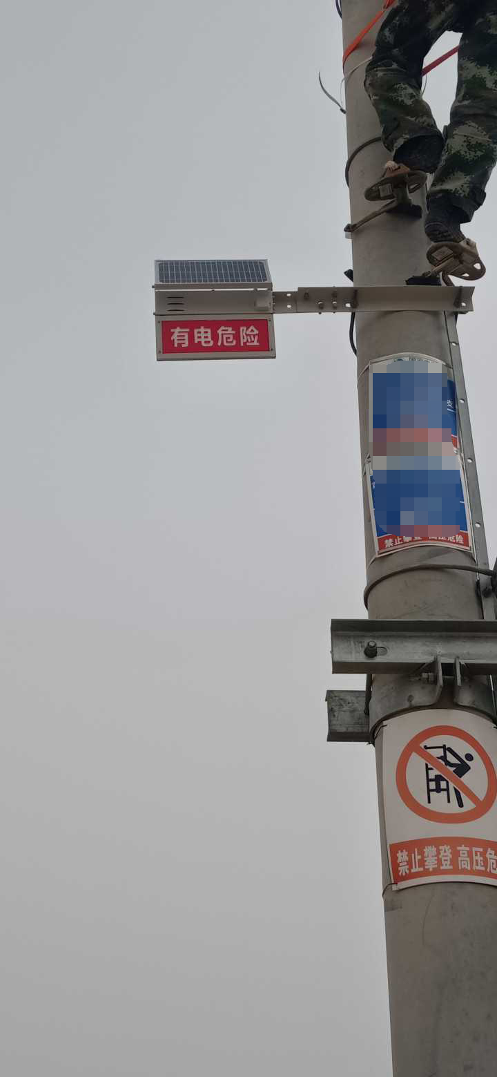 寧夏供電單位采購(gòu)安裝我司(深圳市特力康科技有限公司)高壓警示牌,該裝置采用太陽(yáng)能供電及電池供電,白天當(dāng)有物體接近裝置時(shí),設(shè)備紅外感應(yīng)模塊立即啟動(dòng),由控制系統(tǒng)智能聯(lián)動(dòng)語(yǔ)音警示模塊,啟動(dòng)警笛告警,提醒行人、注意高壓輸電線路,夜晚設(shè)備則以LED燈標(biāo)語(yǔ)進(jìn)行警示。設(shè)備支持定時(shí)間自動(dòng)播放警笛以提醒在該線路內(nèi)的人員。