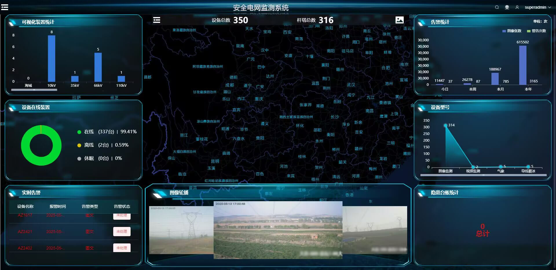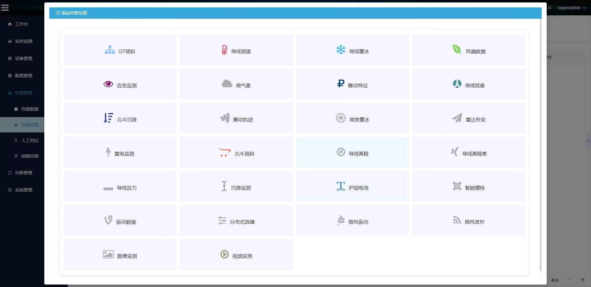 安全電網監測系統軟件平臺TLKS-PMS主要由監控平臺、設備通訊處理服務及各類子監控巡視系統組成。整個系統以監控平臺為核心,完成對各類子系統的整合,集中實現監控數據處理、實時巡視、數據分析、數據推送等功能,并完成與其他系統的鏈接通信。實現對輸電線路現場視頻、施工環境、覆冰、氣象、振動、形變監測等各種重要信息的集中收集、處理、巡視、預警等功能。