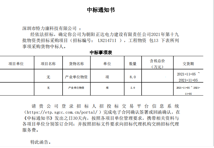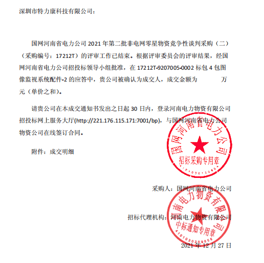 特力康中標國網(wǎng)黑龍江送變電工程公司的2024年度第18次物資類競爭性談判采購項目——慶陽驅鳥器物資框 特力康中標國網(wǎng)甘肅省電力公司省管產(chǎn)業(yè)單位2024年第五次物資競爭性談判授權采購項目 中標喜訊:深圳市特力康科技有限公司成功入圍許繼集團綜合能源公司輸電線路視頻在線監(jiān)測裝置模塊集采項目 中標喜訊:特力康成功中標國網(wǎng)重慶市電力公司渝中一片區(qū)項目 特力康成功中標國網(wǎng)天津市電力公司2024年第二次?物?資招標項目 特力康中標國網(wǎng)安徽省電力有限公司蕪湖供電公司2024年3月非物質采購項目 四川電力用特力康架空輸電線路山火監(jiān)測裝置,筑牢林區(qū)輸電 “防火墻”? 遼寧電力啟用特力康多視角監(jiān)拍裝置,全維度守護輸電安全? 破解黃土高原沉降難題:山西電力用特力康北斗裝置守桿塔安全? 山東電力啟用特力康動態(tài)版智能激光驅鳥器,動態(tài)防控守護變電站安全? 湖南超高壓電力啟用特力康球機 AI 監(jiān)測裝置,智能守護輸電通道安全? 廣西電力啟用特力康高壓電纜護層環(huán)流監(jiān)控設備,筑牢電纜安全防線? 山東電力用上特力康綜合驅鳥器,多手段守護變電站安全? 陜西電力啟用特力康智能預警系統(tǒng),多維監(jiān)測守護輸電安全? 寧夏配電線路安裝了我司防外破電子化智能警示牌