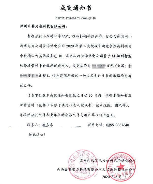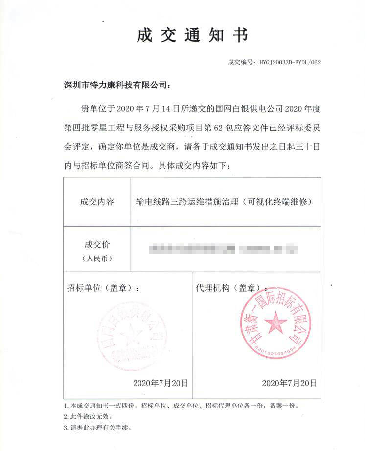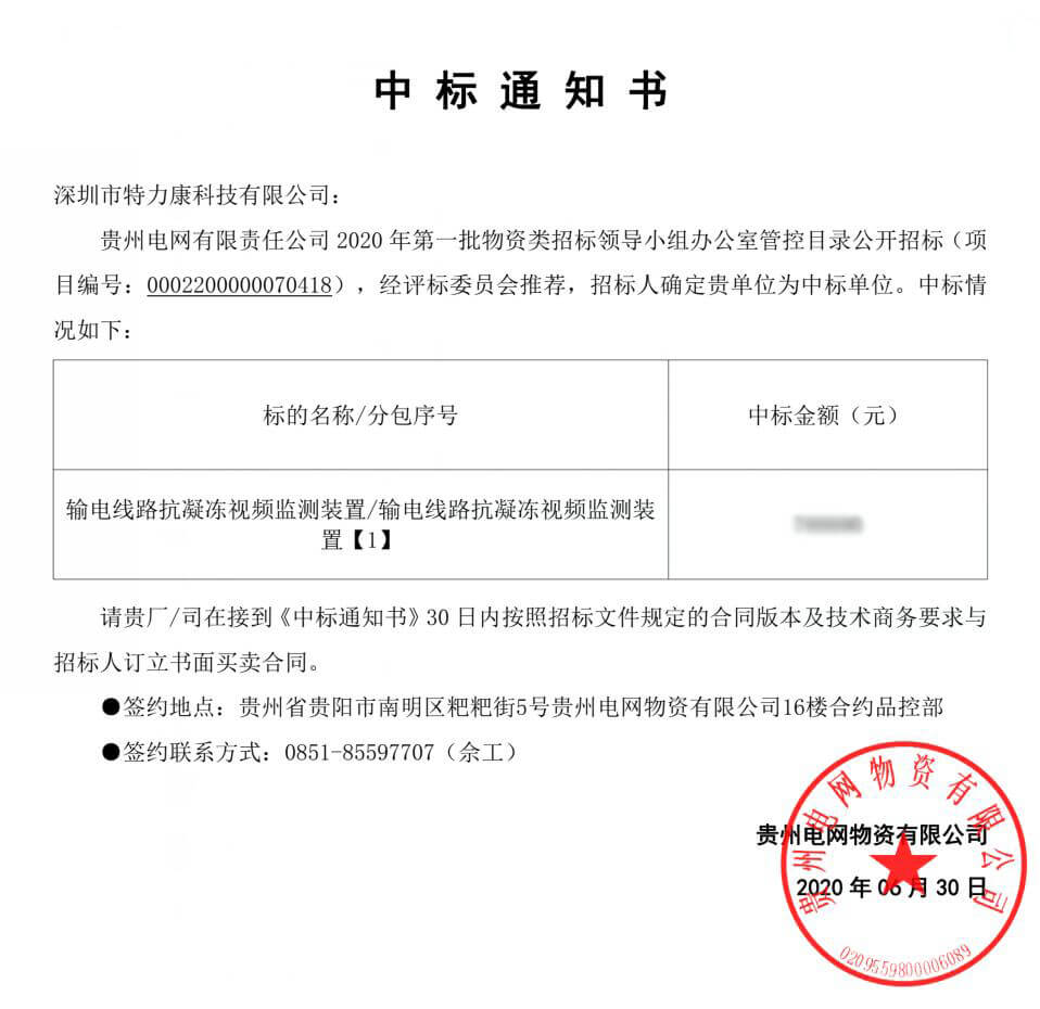 特力康中標國網黑龍江送變電工程公司的2024年度第18次物資類競爭性談判采購項目——慶陽驅鳥器物資框 特力康中標國網甘肅省電力公司省管產業單位2024年第五次物資競爭性談判授權采購項目 中標喜訊:深圳市特力康科技有限公司成功入圍許繼集團綜合能源公司輸電線路視頻在線監測裝置模塊集采項目 中標喜訊:特力康成功中標國網重慶市電力公司渝中一片區項目 特力康成功中標國網天津市電力公司2024年第二次?物?資招標項目 特力康中標國網安徽省電力有限公司蕪湖供電公司2024年3月非物質采購項目 四川電力用特力康架空輸電線路山火監測裝置,筑牢林區輸電 “防火墻”? 遼寧電力啟用特力康多視角監拍裝置,全維度守護輸電安全? 破解黃土高原沉降難題:山西電力用特力康北斗裝置守桿塔安全? 山東電力啟用特力康動態版智能激光驅鳥器,動態防控守護變電站安全? 湖南超高壓電力啟用特力康球機 AI 監測裝置,智能守護輸電通道安全? 廣西電力啟用特力康高壓電纜護層環流監控設備,筑牢電纜安全防線? 山東電力用上特力康綜合驅鳥器,多手段守護變電站安全? 陜西電力啟用特力康智能預警系統,多維監測守護輸電安全? 寧夏配電線路安裝了我司防外破電子化智能警示牌