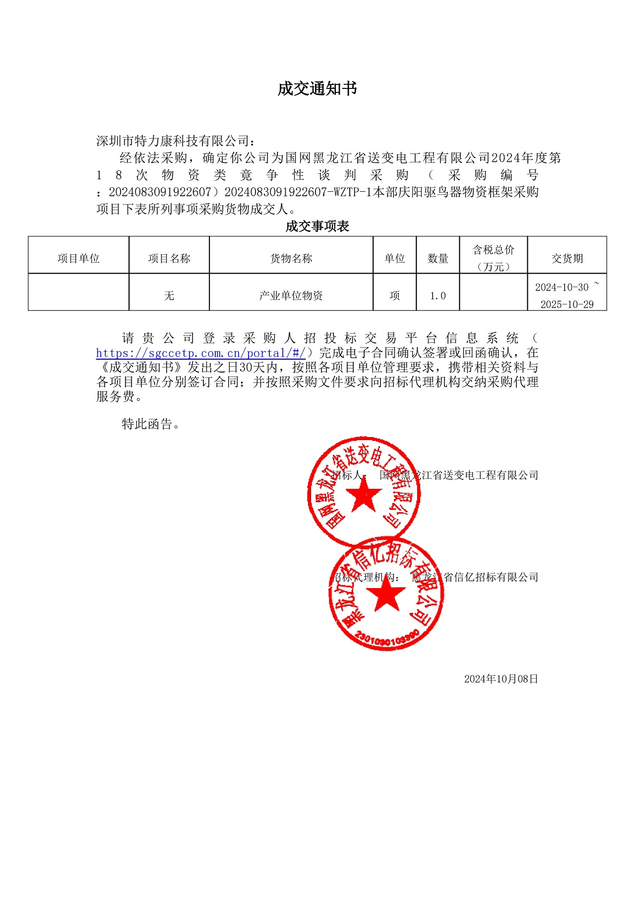 特力康中標國網黑龍江送變電工程公司的2024年度第18次物資類競爭性談判采購項目——慶陽驅鳥器物資框 特力康中標國網甘肅省電力公司省管產業單位2024年第五次物資競爭性談判授權采購項目 中標喜訊:深圳市特力康科技有限公司成功入圍許繼集團綜合能源公司輸電線路視頻在線監測裝置模塊集采項目 中標喜訊:特力康成功中標國網重慶市電力公司渝中一片區項目 特力康成功中標國網天津市電力公司2024年第二次?物?資招標項目 特力康中標國網安徽省電力有限公司蕪湖供電公司2024年3月非物質采購項目 破解黃土高原沉降難題:山西電力用特力康北斗裝置守桿塔安全? 山東電力啟用特力康動態版智能激光驅鳥器,動態防控守護變電站安全? 湖南超高壓電力啟用特力康球機 AI 監測裝置,智能守護輸電通道安全? 廣西電力啟用特力康高壓電纜護層環流監控設備,筑牢電纜安全防線? 山東電力用上特力康綜合驅鳥器,多手段守護變電站安全? 陜西電力啟用特力康智能預警系統,多維監測守護輸電安全? 五目監測筑牢安全網?,河南電力部門啟用我司特力康高壓輸電線路在線遠程圖像系統 寧夏配電線路安裝了我司防外破電子化智能警示牌