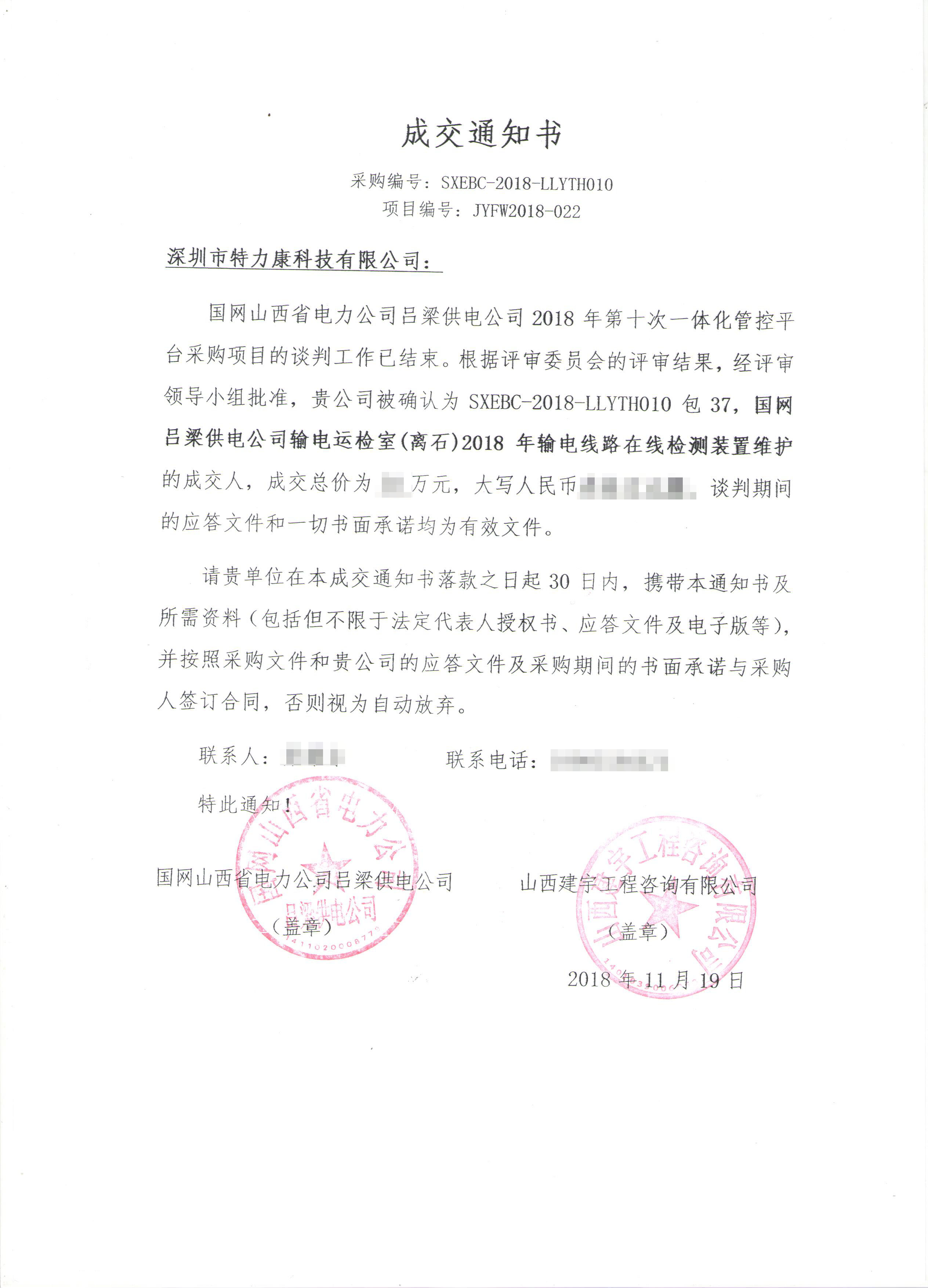 國網山西省電力公司2018年第十次一體化管控平臺采購項目評審工作已結束,經評審委員會評審,經國網山西省電力公司招投標領導小組批準,將評審結果公示。我司被確定為中標單位現將公告公示。